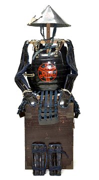 - 一方、大名が大量につくって足軽や雑兵に貸し与えていた「御貸具足」と呼ばれる簡易甲冑では、近接戦での識別を容易にするため、陣笠や前胴には大きな家紋が描かれていました。
